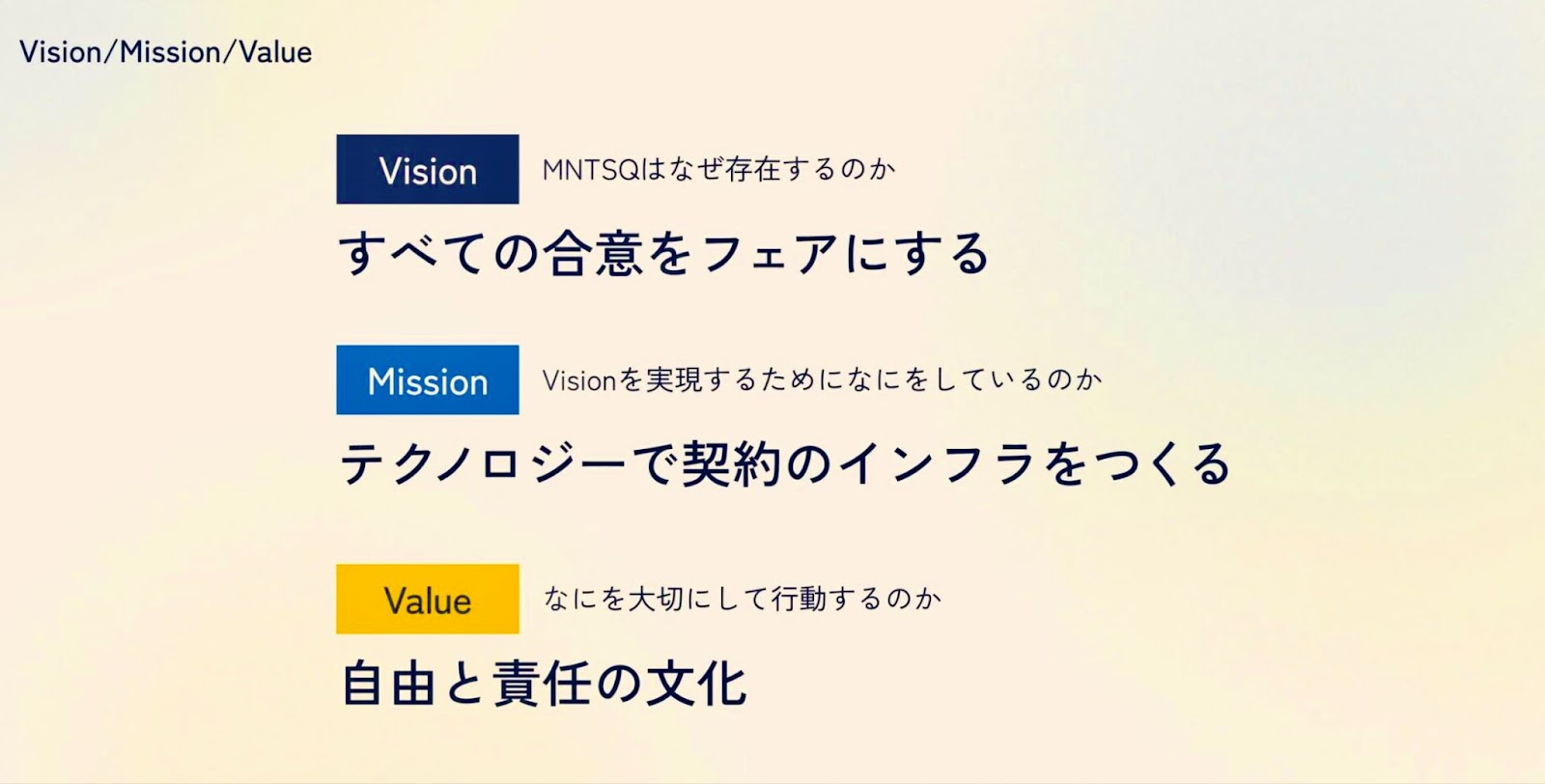 MNTSQ株式会社は、「すべての合意をフェアにする」ことを掲げて、創業当初から長島・大野・常松法律事務所の全面的なサポートを受けて2018年11月に設立されました。四大法律事務所の一つである長島・大野・常松法律事務所のノウハウと、契約・法務に特化した独自の機械学習との掛け合わせをコアとし、顧客の業務変革を支援します。契約の作成・審査・管理からナレッジ化までを一気通貫でサポートし、契約・法務業務を変革するサービス「MNTSQ CLM」を提供しています。